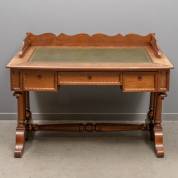 Mahonie bureau met groen lederen blad, 20e eeuw -afwerking sleets-, 74,5 × 121 × 77 cm