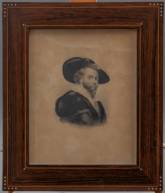 Portrettekening van Peter Paul Rubens, potlood en krijt op papier, m.o. gesigneerd S. Smith, in palissandergefineerde lijst, 19e eeuw, 26 × 21 cm