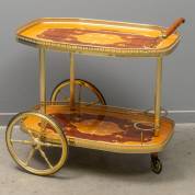 Messing serveertrolley met bloemmarqueterie in het blad, modern, 71 × 73 × 43 cm