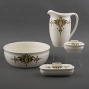 Vierdelig aardewerk lampetstel, uitvoering Petrus Regout, Maastricht -barst in kleinste deksel-