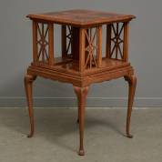 Wortelnotengefineerde boekenmolen op cabriolepoten -watervlekken-, 75 × 48 × 48 cm