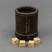 Lederen dobbelbeker met vier dobbelstenen