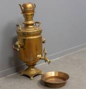 Grote messing samovar met keteltje en bassin, hoogte zonder keteltje 73 cm
