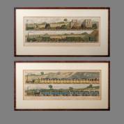 Paar lithografieën: 'Traveling on the Manchester and Liverpool railway', naar gravures van Moses Bruin Cotsworth, 20e eeuw -enkele verkleuringen en vlekjes-, 21 × 61,5 cm