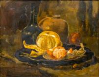 Theodoor Goedvriend (1879-1969), stilleven met mandarijn en sinaasappel, olieverf op schilderskarton, r.o. gesigneerd -craquelé-, 47,5 × 37,5 cm