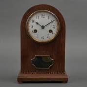 Eikengefineerde tafelklok met halfronde kast, uitvoering Junghans, derde kwart 20e eeuw, 30 × 20 × 13 cm