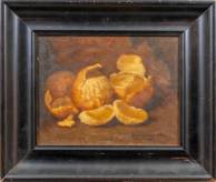 Hollandse School: stilleven van sinaasappelen, olieverf op karton, r.o. gesigneerd A Hamburger en gedateerd '24, 21 × 27 cm