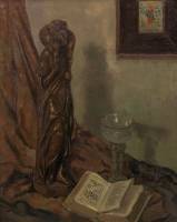 Kees Baard (1897-1972), stilleven met beeld van Christus als Goede Herder, roemer en bijbel, olieverf op doek, r.o. gesigneerd -klein stukje verfverlies-, 76 × 61 cm