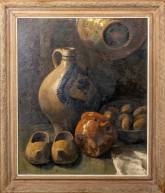 Hendrik Cornelis van Eck (1910-1996), stilleven met kruik en klompen, olieverf op board, r.o. gesigneerd, 69 × 57 cm