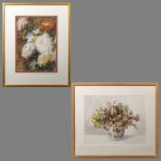 Hollandse School: twee bloemstillevens, aquarel, één gemonogrammeerd AvG, 40 × 32 cm en 47 × 34 cm