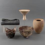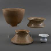 Vijf keramische objecten: cachépots, schalen en een vaas, enkele gemerkt, Nederland, jaren '80-'90, 22 Ø 18 cm