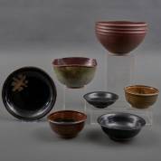 Zeven keramische schalen, diverse uitvoeringen en formaten, veelal gemerkt, jaren '70-'80, 15 × Ø 23 cm