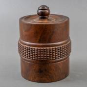 Hardhouten tabakspot met coromandel knop en gekartelde buik, art deco -droogtescheuren- 23 × Ø 15 cm