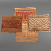 Een dubbele en drie enkele katoenen complementair geweven tampans met geometrische motieven, Sumatra, Indonesië, circa 1920 -beschadigingen, herstellingen, vlekjes- dubbele tampan: 84 × 42 cm