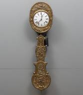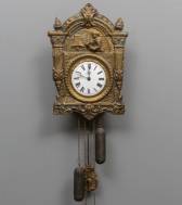 Wandklokje, de latoenkoperen frontplaat met decor van klokkenluider, 49 × 35 × 11 cm