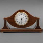 Mahonie tafelklokje met ingelegde bies, circa 1900, 16 × 29 × 8 cm