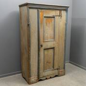 Lichtblauwgelakte naaldhouten ééndeurs kast, 18e eeuw -doorleefd-, 183 × 112 × 54 cm