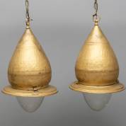 Paar messing hanglampen, 60 × Ø 35 cm