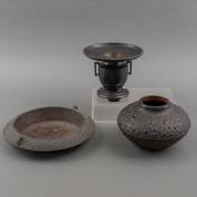 Metalen ikebana vaasje, gietijzeren pot en gietijzeren brasero, Japan, modern, vaasje 14 × Ø 18 cm