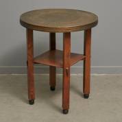 Eiken rooktafeltje met koperen blad, Amsterdamse School, 70 × Ø 60 cm