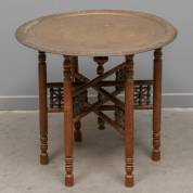 Opvouwbaar rooktafeltje met gegraveerd messing blad, Arabische wereld, circa 1900, 56 × Ø 61 cm