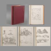 Boek: (Laar, G. van) (1767-1820). Verzameling van tuinsieraden, bevattende: 40 platen als modellen voor schetsen van plattegronden met en zonder waterwerken tot het aanleggen van tuinen en buitenplaatsen; benevens 60 platen tot voorbeelden om koepels, tuinhuizen, prieeltjes, zitbanken enz. te doen vervaardigen. Gouda, G.B. van Goor, (1867). 4to. Keurige, nieuwe linnen band. Met 100 platen, 34 × 24 cm