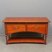 Eiken sidetable met etagère, twee lades en twee uittrekbladen, eind 20e eeuw, 71 × 125 × 45 cm