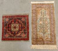Turks zijden tapijtje Kayseri -vlek-, en Perzisch tapijtje Kaskay, Kayseri 106 × 56 cm