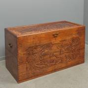 Chinese kamferkist met gesneden decors -krimpscheur-, 72 × 130 × 60 cm