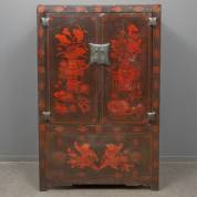 Chinese bruidskast met zwart-rood bloemenvaasdecor, eind 20e eeuw, 187 × 120 × 56 cm
