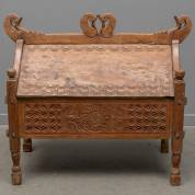 Houten bruidskist met gesneden bloemmotieven, Zuidoost-Azië, circa 1900 -gebruikssporen-, 77 × 87 × 58 cm
