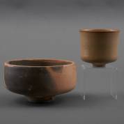 Gerlach van Beinum Baas (1953), keramische cache-pot en schaal op voet, gemerkt, 10 × Ø 19 cm