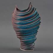 Johan van Loon (1934-2020), bordeauxrood- en blauwgeglazuurd keramisch vaasje, gemerkt en gedateerd '97, 26 × 26 × 13 cm