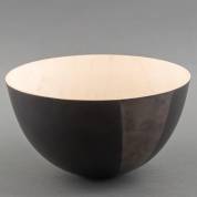 Zwarte keramische schaal met zwartgeglazuurde buitenzijde en ongeglazuurde binnenzijde, mogelijk Japans, modern -gebruikssporen-, 22 × 31 cm