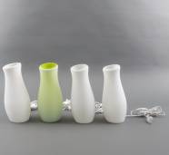Vier matglazen tafellampen, waarvan één met groene binnenzijde, model Mylonit, ontwerp K. Leibel en K. Andreasson, uitvoering IKEA, Zweden, jaren '80, 30 × Ø 12 cm