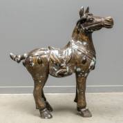 Japans gebronsd paard met goudkleurig floraal decor, 20e eeuw -corrosieplekken-, 87 × 84 cm