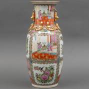 Chinees porseleinen famille rose vaas met decor van bloemen en figuren, Kanton, 20e eeuw, hoogte 46 cm