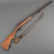 Dubbelloops percussiejachtgeweer, 19e eeuw -sleets-, daarbij: kapmes, lengte geweer 116 cm