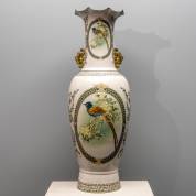 Grote Chinees porseleinen vaas met vogel- en rankendecor, modern, 107 × Ø 35 cm