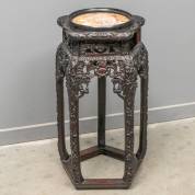 Gezwart padoek Chinees plantentafeltje met natuurstenen blad -één paneeltje missend-, 62 × Ø 32 cm