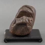 Geaderde 'scholar's rock', op houten basement, steen 13 × 12 × 10 cm