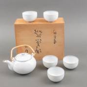 Japans porseleinen theeset bestaande uit vijf kommen en een theepot, in originele kist, Arita, tweede helft 20e eeuw