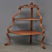 Notenhouten hoeketagère met gekrulde poten en hekje, 20e eeuw -defecten in snijwerk, oorsprokelijk bovendeel van groter geheel-, 96 × 67 × 67 cm