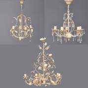 Drie witgelakte metalen kroonlampjes, modern, grootste 75 × Ø 60 cm