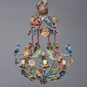 Polychrome metalen kroonluchter met bladerdecor, 73 × Ø 55 cm
