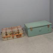 Groen geschilderde metalen kist, en aluminium kist met houten banden, 20e eeuw, groene kist: 109 × 60 × 43 cm