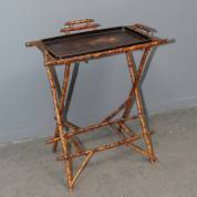 Butlertafeltje met lakwerk dienblad op bamboe onderstel, Japan, eind 19e eeuw -defecten aan onderstel-, 80 × 73 × 42 cm