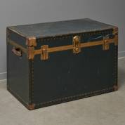 Donkergroene hutkoffer met metalen beslag op de hoeken, 66 × 100 × 57 cm