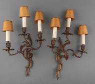 Paar koperen wandlampjes in rococo-stijl -bedrading defect-, 63 × 41 × 20 cm