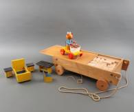 Houten speelgoed: blokkendoos, musicerend varkentje en enkele meubeltjes, 20e eeuw -gebruikssporen-